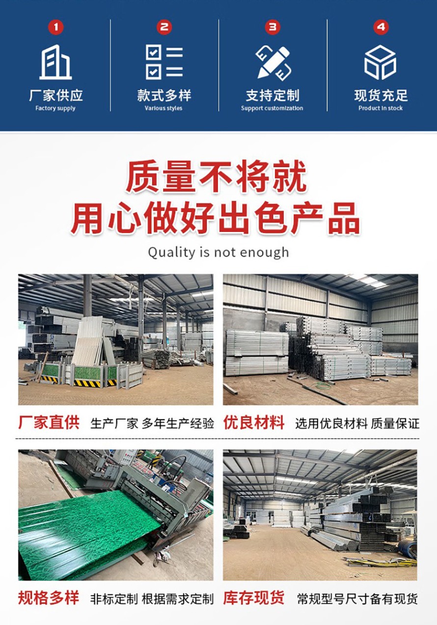 采用國內(nèi)外優(yōu)良技術(shù),引進優(yōu)越的金馬全自動化噴塑流水線,產(chǎn)品防腐性能好,色彩多樣而且物美價廉,施工快捷,安全可靠